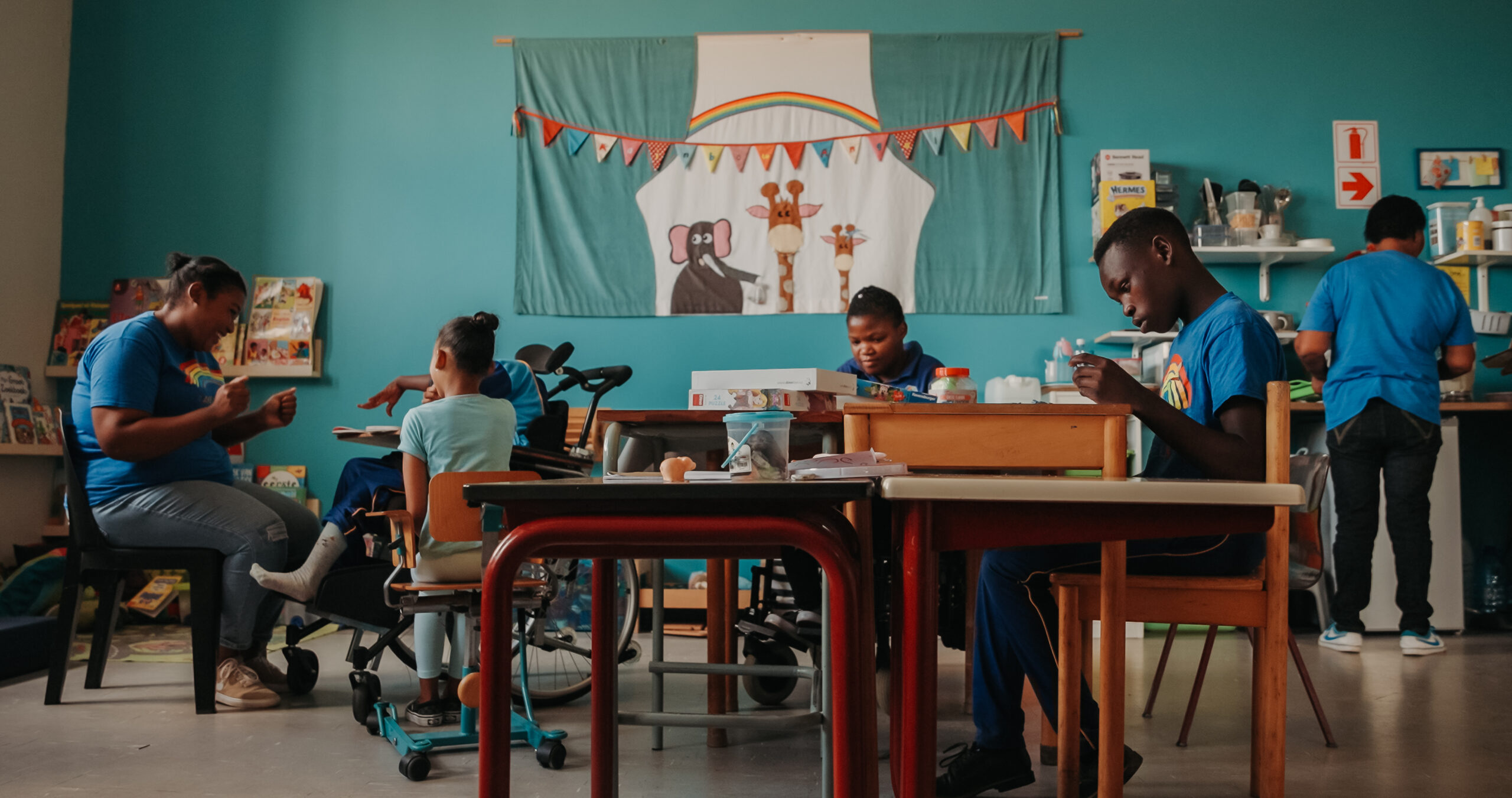 Midden in de sloppenwijken van Humansdorp staat Rainbow Village, een speciaal centrum voor kinderen en jongeren met verschillende beperkingen of achterstanden. Rainbow Village bestaat uit: