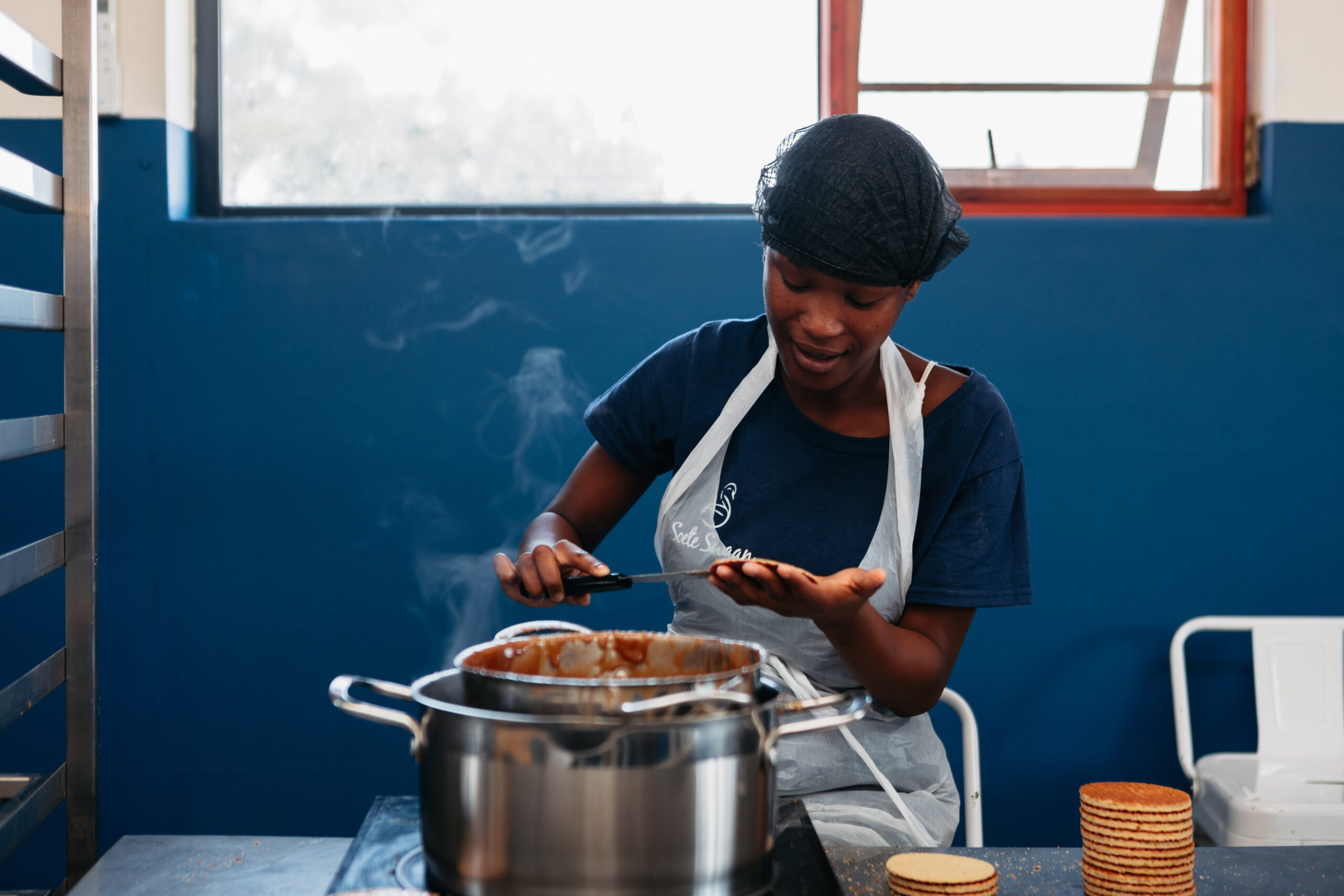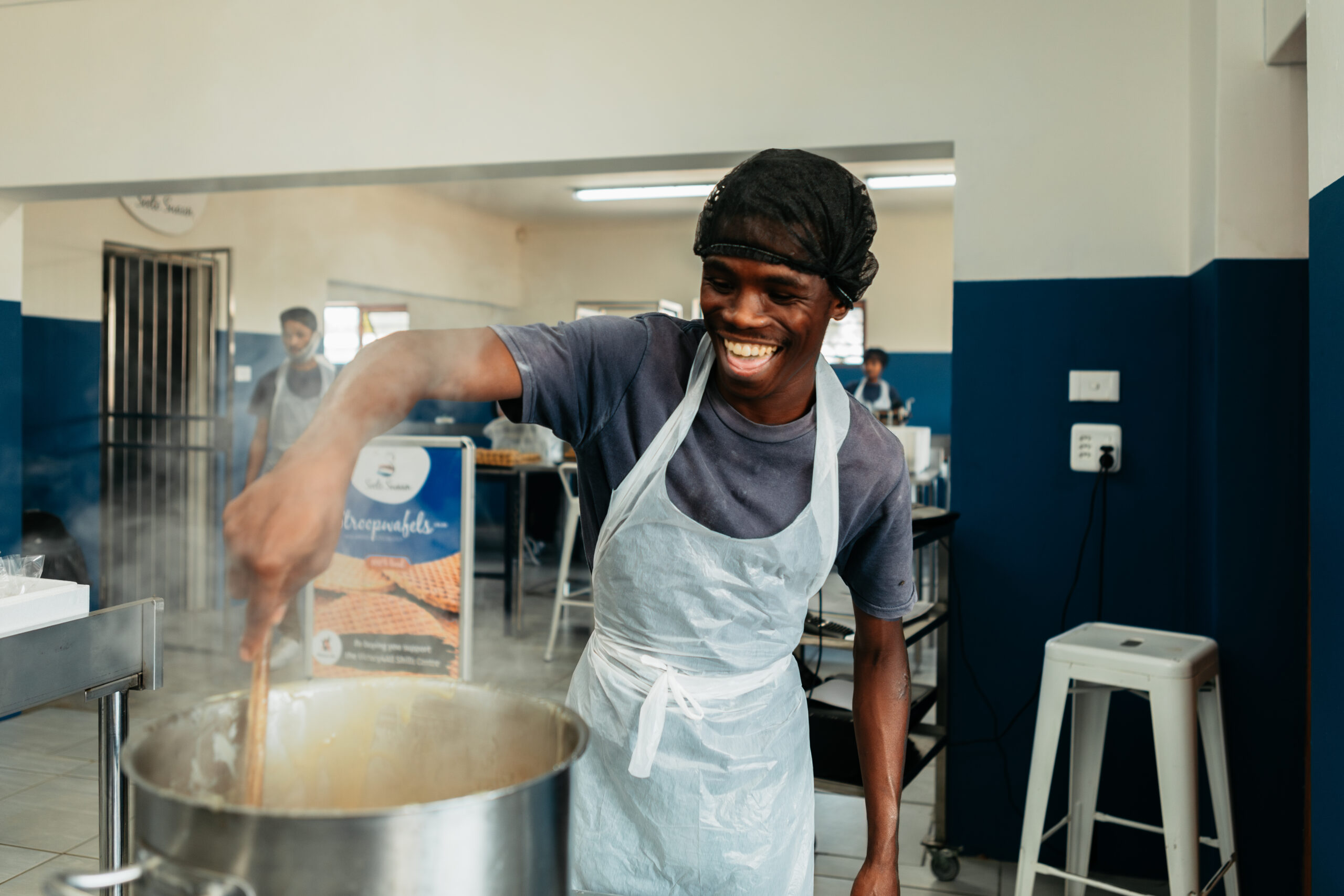 De jongeren leren producten en diensten ontwikkelen waarmee ze inkomsten kunnen creëren. Bedrijven uit de omgeving bestellen bijvoorbeeld lunch voor hun werknemers bij de Rainbow Catering-afdeling. Ook de stroopwafelbakkerij Soete Swaan is onderdeel van het Skills Centre. Vanuit het hele land komen bestellingen binnen voor deze heerlijke stroopwafels. Zo leren de jongeren omgaan met geld en hopen we hen uiteindelijk te plaatsen bij lokale bedrijven en organisaties.
